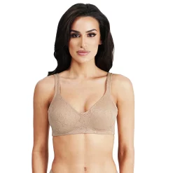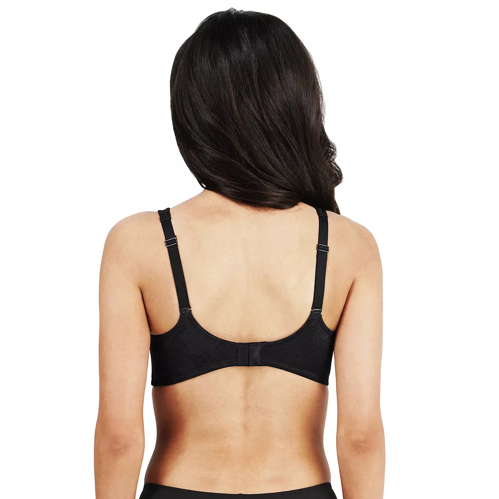 Breathable, seamless and smooth, this women’s Dominique Jolie Jacquard wireless minimizer bra disappears beneath tops and minimizes bust by up to 1 inch.