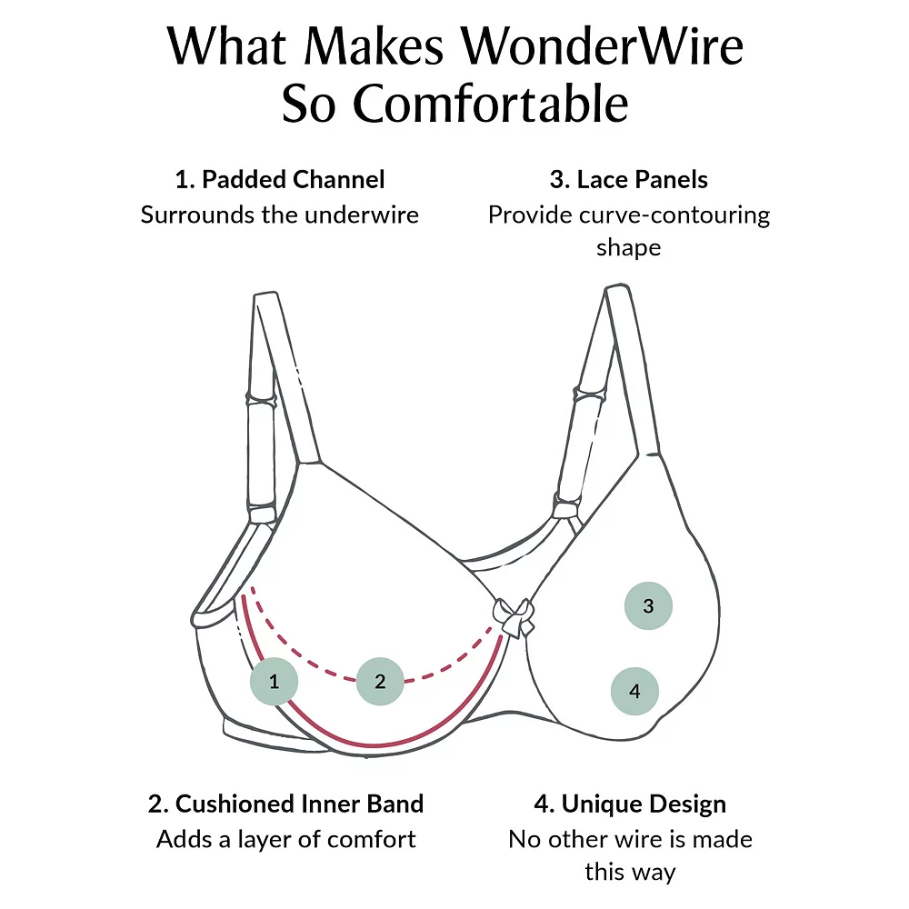 - Padded underwire adds cushion to prevent poking