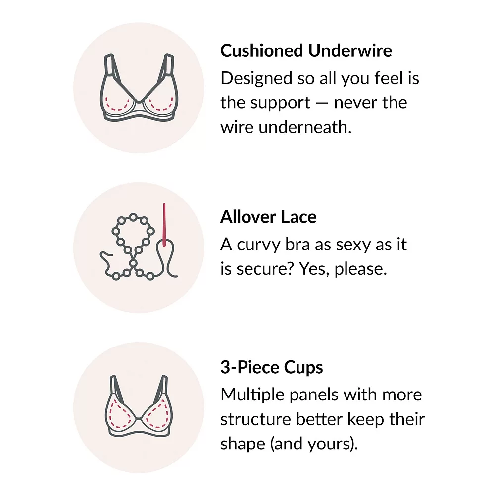 Featuring a padded underwire and multi-panel cups, this women’s Glamorise full-figure bra provides excellent support and separation, making it a foundation must-have.