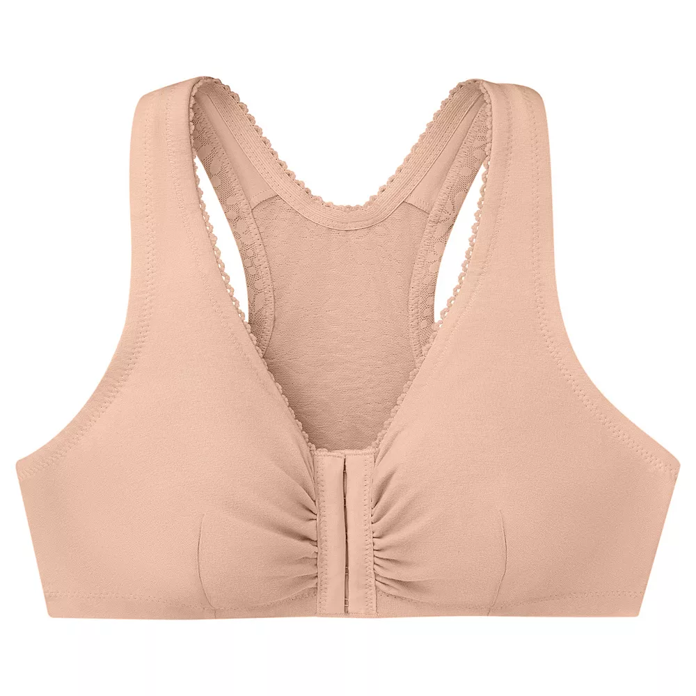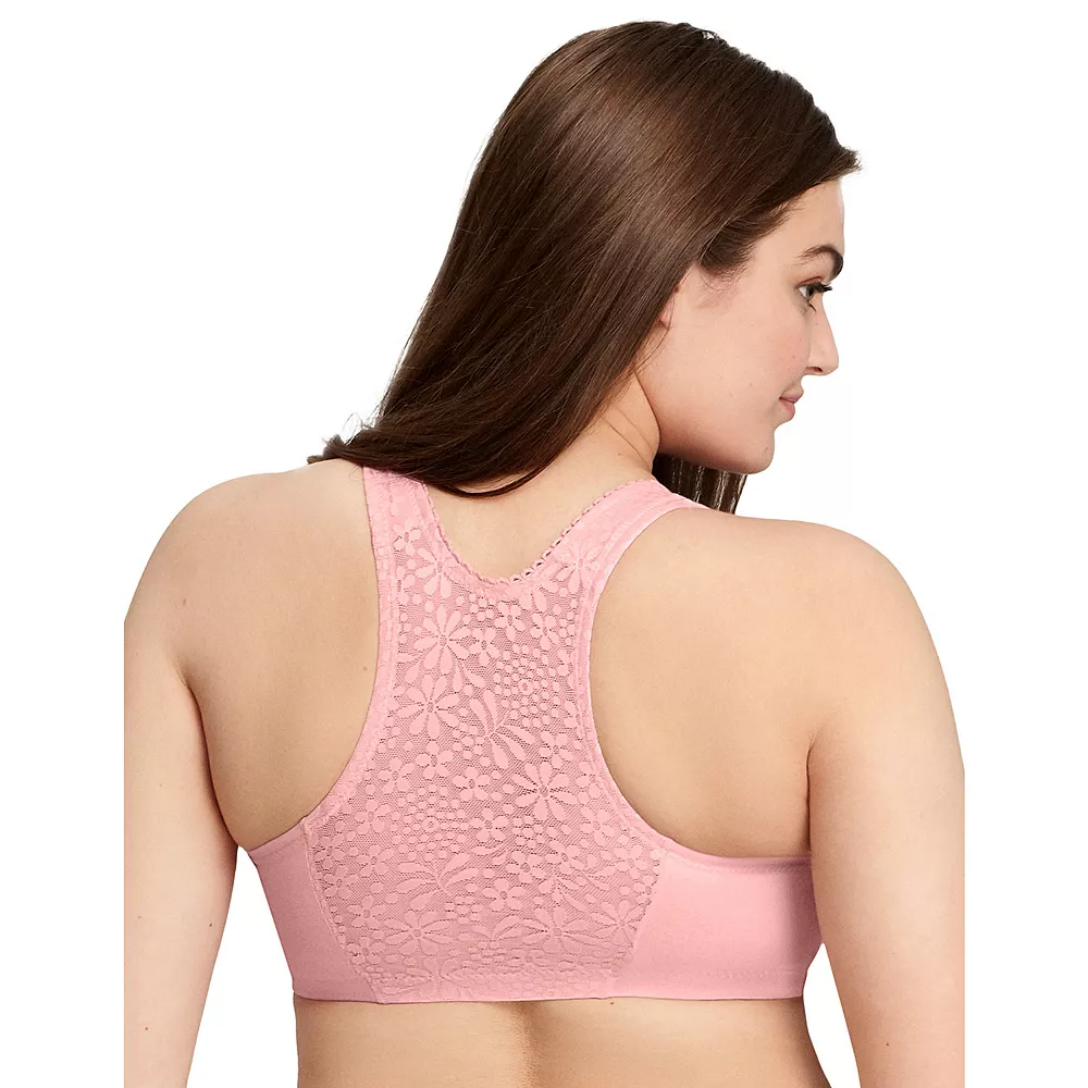 Meet your new favorite everyday bra. This cotton blend front close bra combines the comfort of cotton with a beautiful lace racer-back design that breathes and provides a smooth look. This women’s Glamorise bra is designed to comfort and pamper you day or night.