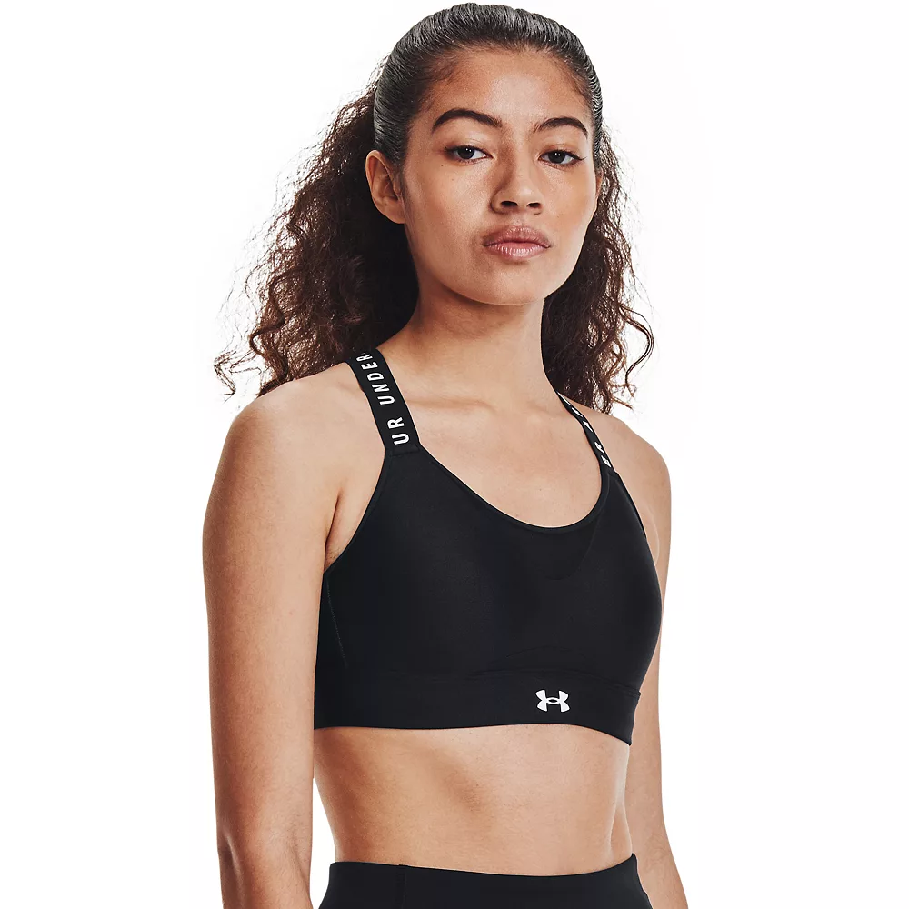 This women’s Under Armour sports bra delivers strategic support, tailored for high-support activities like running, court sports, field sports & aerobics.