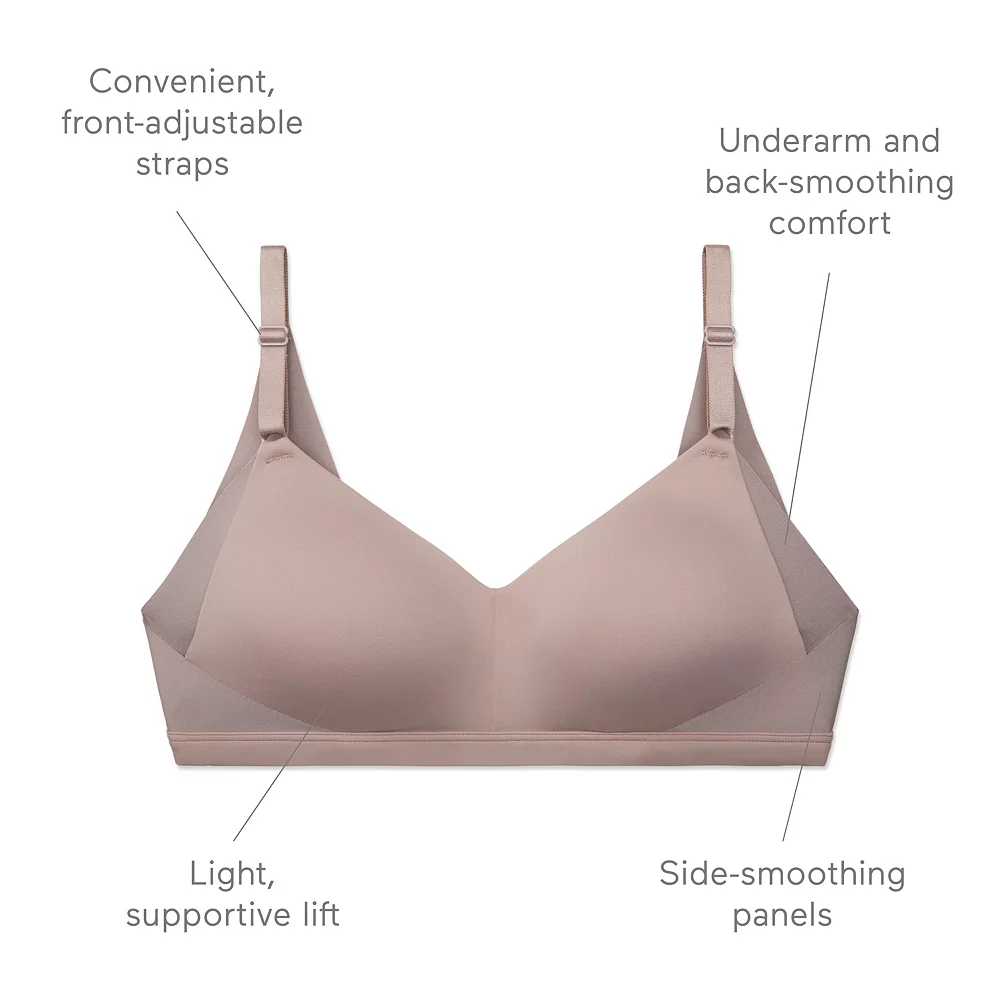 Smooth things over with the Warners® No Side Effects® wireless lift t-shirt bra with simple, easy sizing. Elastic-free, side-smoothing panels and back won’t show under your clothes. Get the extra support and comfort you need with a light lift, flexible cups, and convenient front-adjustable straps. Welcome to a better bra experience. When it comes to intimates, everyone needs something different. That’s why we made styles for every body. We’re simple solutions, made better.