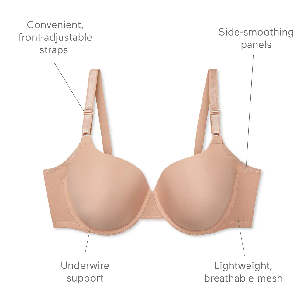 Smooth things over with the Warners No Side Effects® underwire t-shirt bra. Extra coverage panels and elastic-free sides provide tank top approved underarm smoothing, made for sleeveless styling. Get incredible comfort and convenience with lightweight breathable mesh and front-adjustable straps. Welcome to a better bra experience. When it comes to intimates, everyone needs something different. That’s why we made styles for every body. We’re simple solutions, made better.