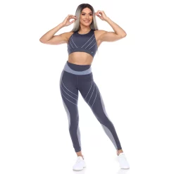 An athletic matching set featuring a Cut Out Back Mesh Sports Bra and a High-Waist Reflective Piping Fitness Leggings in a variety of stylish colors to create your own unique workout looks.